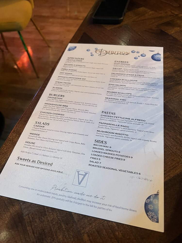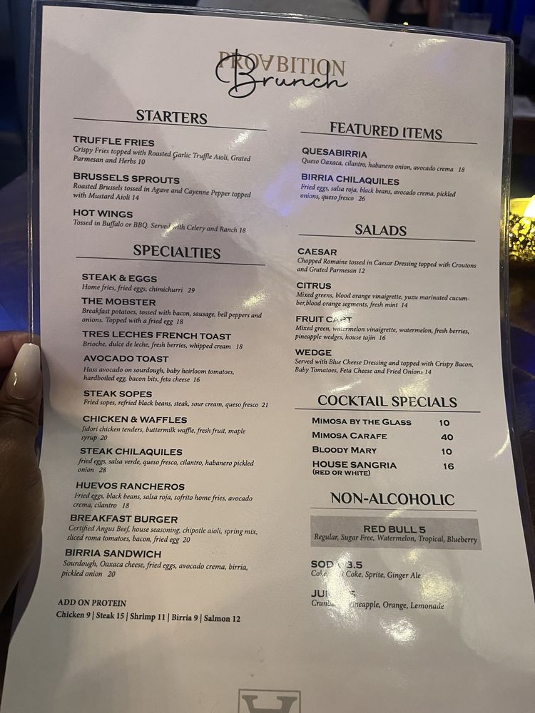 ProAbition, located in Riverside, CA, is a versatile restaurant offering a variety of options for different dietary needs including vegan and vegetarian choices. The ambiance is classy yet casual, with outdoor seating and a full bar. Customers rave about the attentive service provided by staff members like Georgie and Bobby, who ensure a memorable dining experience. The menu features dishes that are bursting with flavor, such as melt-in-your-mouth sprouts and flavorful sliders. Guests appreciate the live DJ playing music and the overall welcoming atmosphere. Whether you're there for dinner, happy hour, or a special celebration, ProAbition delivers on both quality and service. Don't miss out on the Vegas vibes and excellent food that make this restaurant a must-visit.